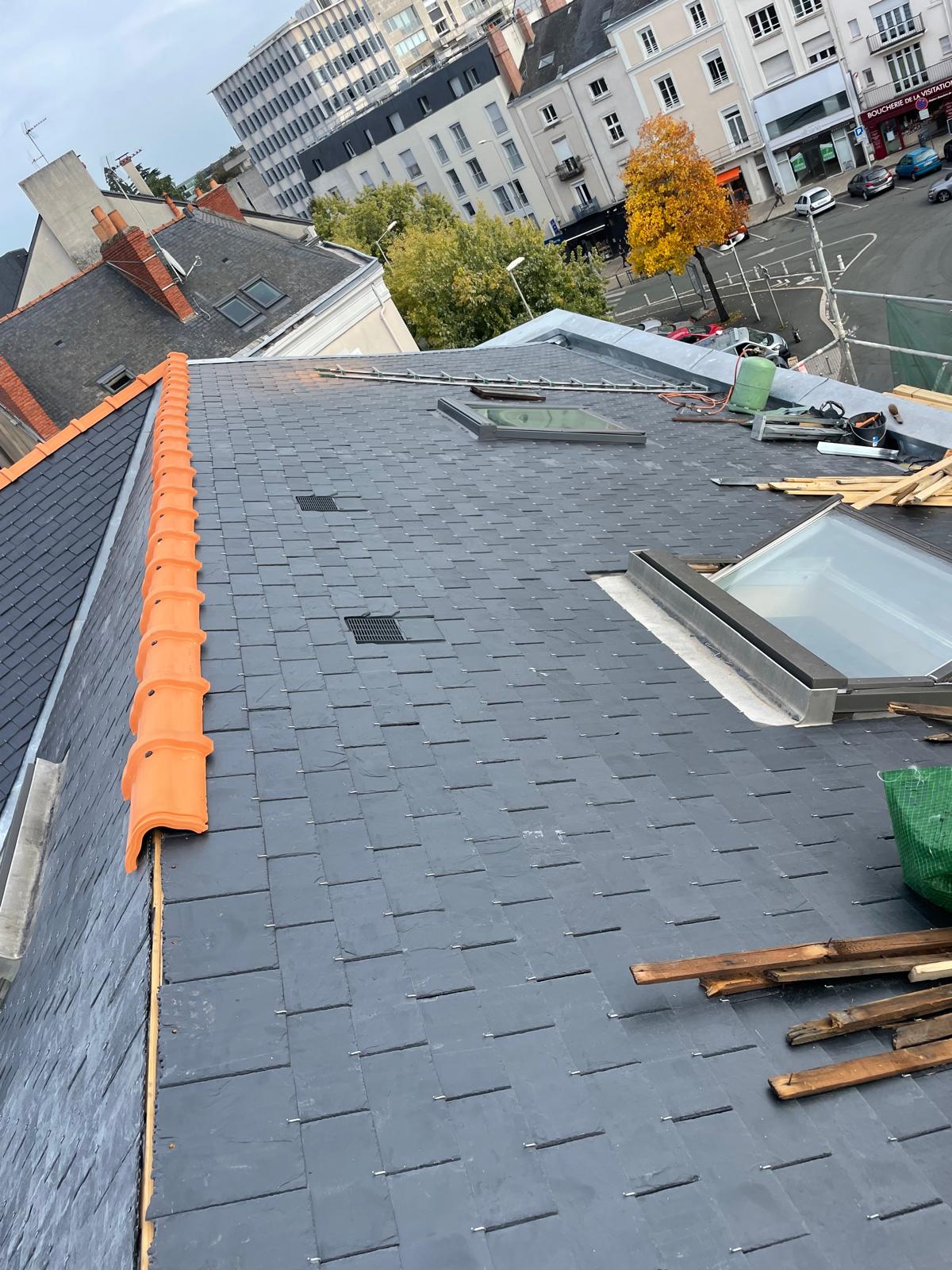 Pour redonner une seconde jeunesse à cette maison, nous sommes intervenus pour le remplacement complet de la couverture en ardoise. Une toiture fatiguée peut vite devenir un problème, c’est pourquoi nous avons pris soin de poser des ardoises de qualité, durables et esthétiques. Ce chantier, réalisé à Bouchemaine, permet désormais à la maison d’être mieux protégée tout en gagnant en cachet.